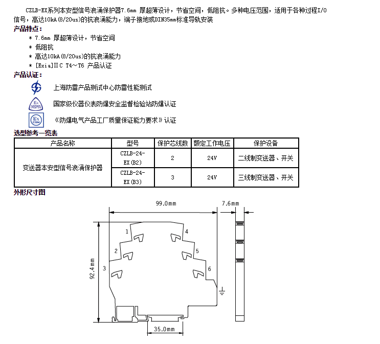 CZLB-24-EX(B2),CZLB-24-EX(B3),信號(hào)浪涌保護(hù)器