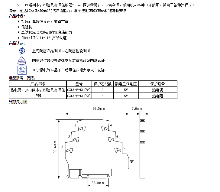 CZLB-5-EX(R2),CZLB-5-EX(R3),信號浪涌保護器