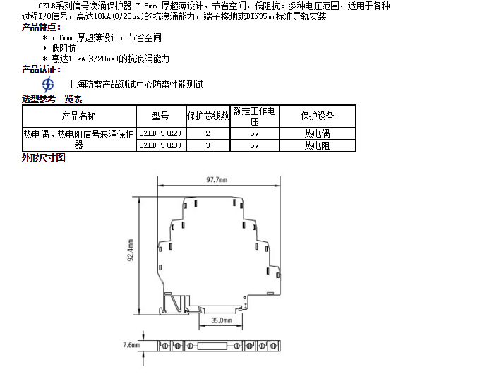 CZLB-5(R2),CZLB-5(R3),信號浪涌保護(hù)器