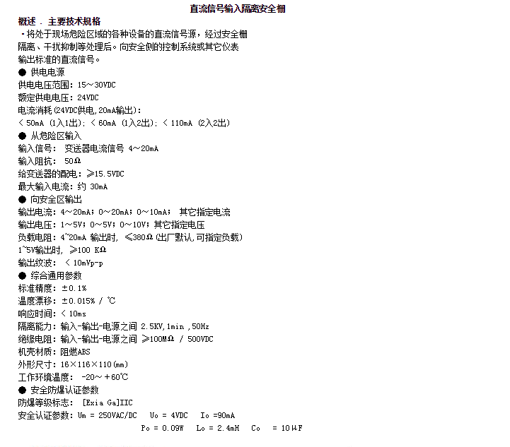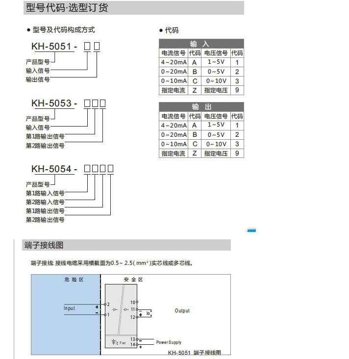 KH-5051,KH-5053,KH-5054,直流信號輸入隔離安全柵