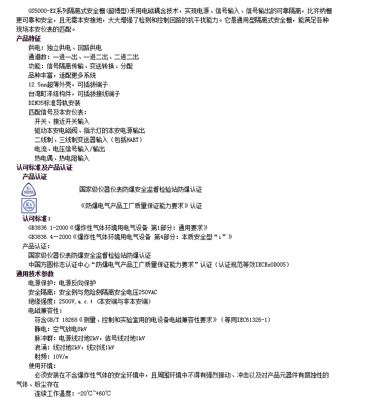 GS5071-EX,GS5071-EX.M,GS5076-EX,GS5079-EX,GS5072-EX,GS5072-EX.M,隔離式安全柵