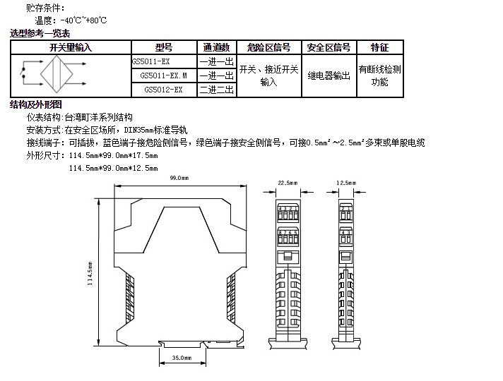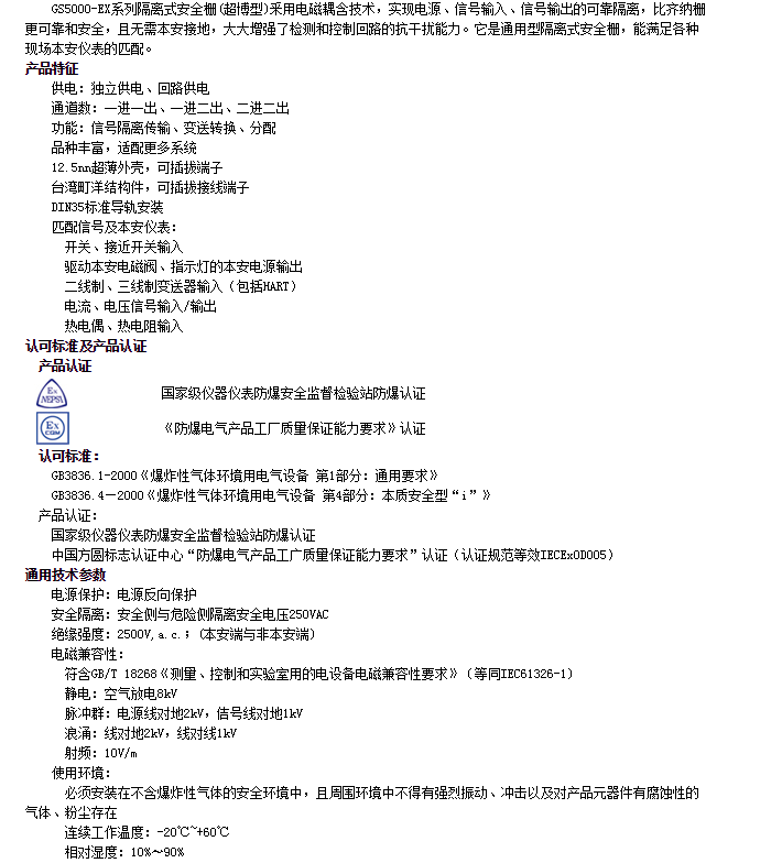 GS5011-EX,GS5011-EX.M,GS5012-EX,開(kāi)關(guān)量輸入隔離式安全柵