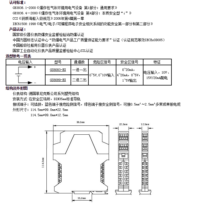 GS8083-EX,GS8089-EX,電壓輸入隔離式安全柵