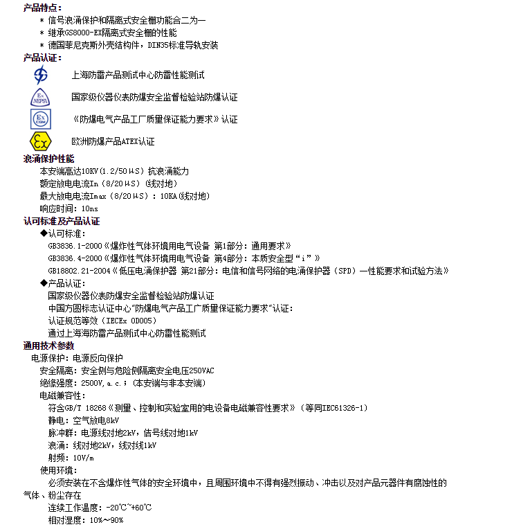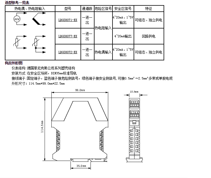 LBGS8071-EX,LBGS8077-EX,LBGS8072-EX,熱電偶、熱電阻輸入浪涌保護隔離柵