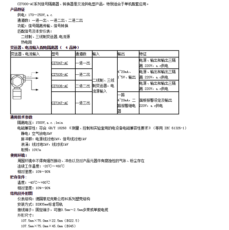 Z7047-AC,CZ7035-AC,CZ7036-AC,CZ7347-AC,變送器、電流輸入配電隔離器