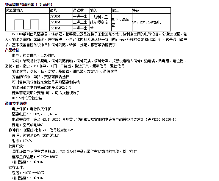 CZ3051,頻率量信號隔離器