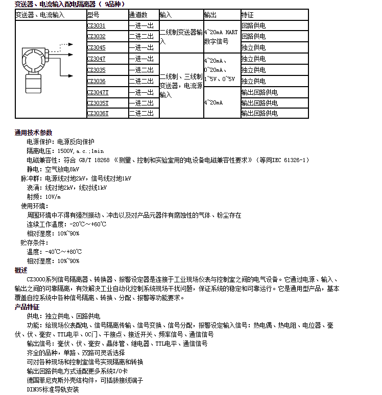 CZ3031,CZ3032,CZ3045,CZ3047,CZ3035,變送器、電流輸入配電隔離器