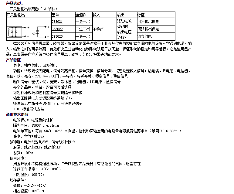 CZ3021,CZ3022,CZ3023,開關(guān)量輸出隔離器