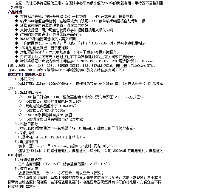 HART375E,手持器