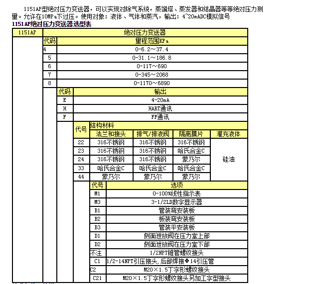 1151AP4,1151AP5,1151AP6,1151AP7,1151AP8,絕對壓力變送器
