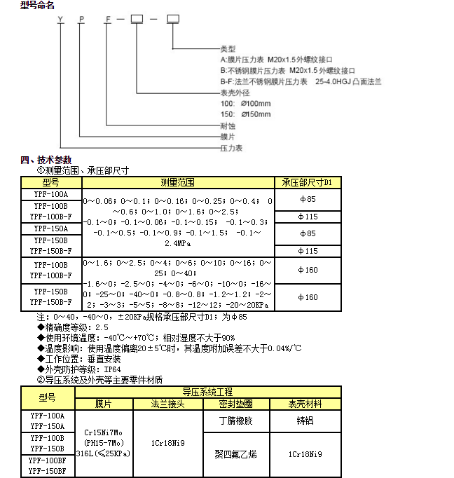 可根據(jù)測量介質(zhì)對腐蝕性能的不同要求而選用不同材料的膜片。