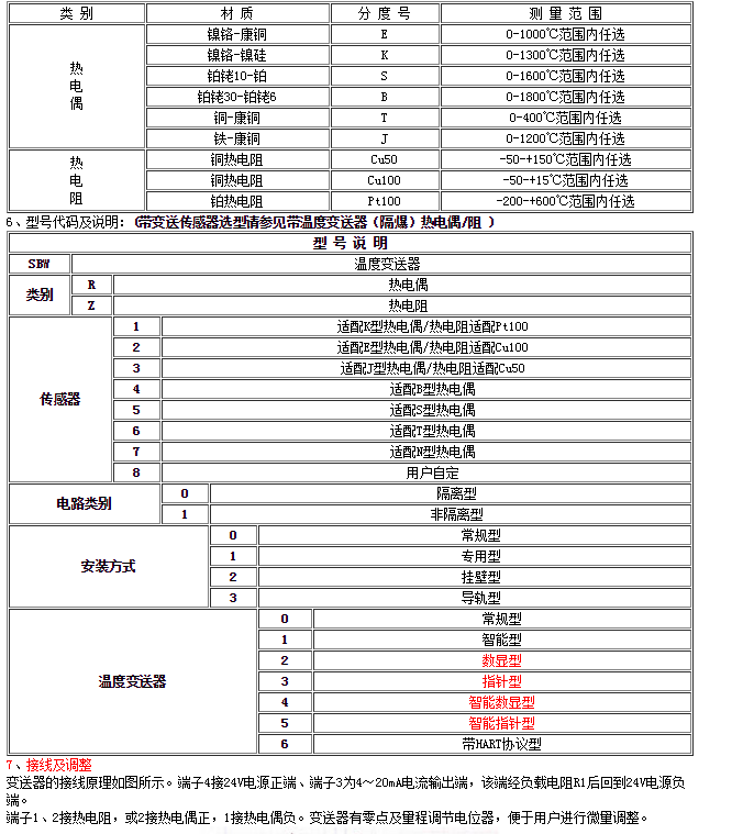 Cu100(三線制、四線制)。智能型溫度變送器的輸入信號可通過手持器和PC機(jī)任意設(shè)置;