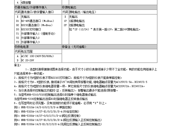NHR-5300系列人工智能PID調(diào)節(jié)器采用微分先行的控制算法,帶有外給定和閥位控制功能。可與各類傳感器、變送器配合使用,實現(xiàn)對溫度、壓力、液位、容量、速度等物理量的測量顯示,并配合各種執(zhí)行器對電加熱設(shè)備和電磁、電動閥進行PID調(diào)節(jié)和控制、報警控制、數(shù)據(jù)采集等功能。 雙屏LED數(shù)碼顯示,且?guī)в泄庵M指示功能(0~100%)。 具備36種信號輸入功能,可任意選擇輸入信號類型;0.2%級測量精度。 具備“上下限報警”、“偏差報警”、“LBA報警”、“閃爍報警”等報警功能,帶LED報警燈指示。 可帶一路PID控制輸出和一路模擬量變送輸出,具有電流、電壓、SSR驅(qū)動、單/三相可控硅過零觸發(fā)、繼電器接點等輸出控制方式可選擇。 帶PID參數(shù)自整定功能,控制輸出手動/自動無擾切換功能,控制準確且無超調(diào)。 支持RS485、RS232串行接口,采用標準MODBUS RTU通訊協(xié)議。 儀表可帶RS232C打印功能,具有手動打印、定時打印、報警打印等功能。 帶DC24V饋電輸出,為現(xiàn)場變送器配電。 輸入、輸出、電源、通訊相互之間采用光電隔離技術(shù)。 具備多種外形尺寸及樣式供用戶選擇。 參數(shù)設(shè)定密碼鎖定、參數(shù)設(shè)置斷電永久保存,具備參數(shù)恢復出廠設(shè)定功能。