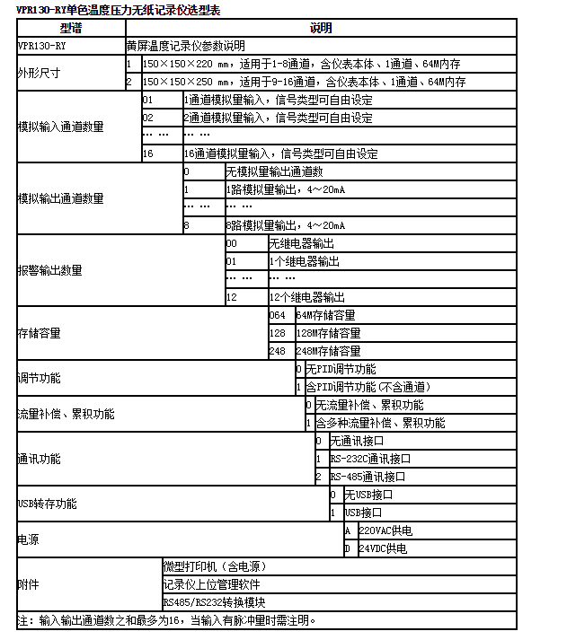 VPR130-RY單色溫度壓力無(wú)紙記錄儀以32位嵌入式CPU為核心,并輔以大規(guī)模集成電路、大容量FLASH存儲(chǔ)、信號(hào)智能調(diào)理、SmartBus總線以及高分辨率圖形液晶顯示器的新型智能化無(wú)紙記錄類儀表。公司產(chǎn)品采用320×234真彩TFT液晶顯示屏;支持16路模擬量萬(wàn)能輸入、8路模擬輸出、12路報(bào)警輸出、16路全隔離24VDC配電輸出,設(shè)定數(shù)據(jù)與記錄數(shù)據(jù)具掉電保護(hù)功能。具有功耗低、精度高、體積小、通道數(shù)多、通用性強(qiáng)、可靠性高、運(yùn)行穩(wěn)定等特點(diǎn)。儀表采用USB Host技術(shù),支持USB 移動(dòng)存儲(chǔ)器的數(shù)據(jù)讀寫(xiě);采用RS-232C/RS-485通訊接口,支持標(biāo)準(zhǔn)MODBUS-RTU協(xié)議,可方便實(shí)現(xiàn)遠(yuǎn)程監(jiān)控。