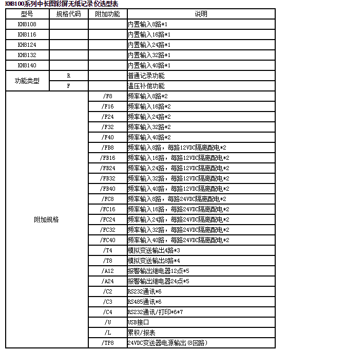 KH8100中長圖彩屏無紙記錄儀,40路萬能輸入,可輸入標(biāo)準(zhǔn)電流、標(biāo)準(zhǔn)電壓、頻率、毫伏、熱電偶、熱電阻等信號。具有傳感器隔離配電輸出、繼電器報(bào)警輸出、變送輸出、流量積算、溫壓補(bǔ)償、歷史數(shù)據(jù)轉(zhuǎn)存、打印以及遠(yuǎn)程通訊功能。
