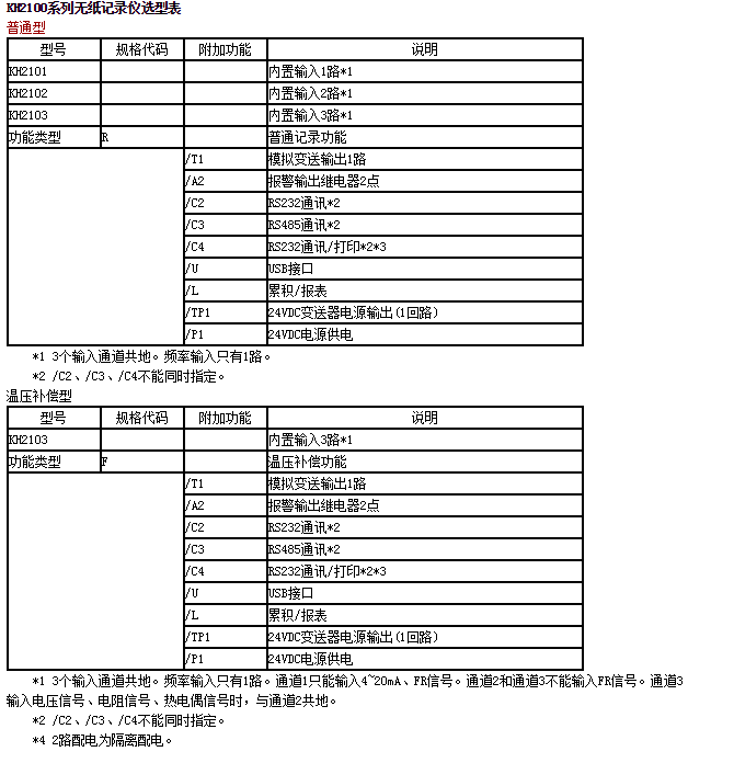 KH2100系列3通道輸入單色無紙記錄儀,可輸入標(biāo)準(zhǔn)電流、標(biāo)準(zhǔn)電壓、頻率、毫伏、熱電偶、熱電阻等信號。具有傳感器隔離配電輸出、繼電器報(bào)警輸出、變送輸出、流量積算、溫壓補(bǔ)償、歷史數(shù)據(jù)轉(zhuǎn)存、打印以及遠(yuǎn)程通訊功能。