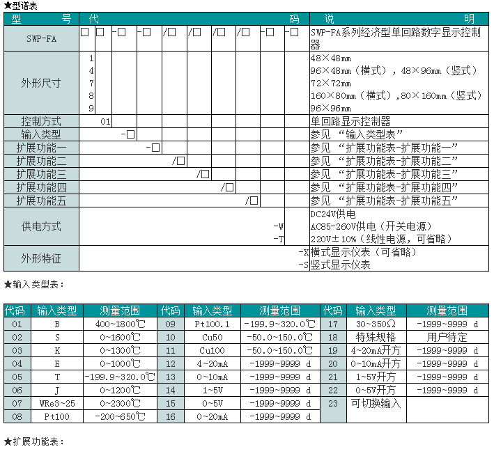SWP-FA101,SWP-FA401,SWP-FA701,SWP-FA801,SWP-FA901,經(jīng)濟型數(shù)字顯示控制器