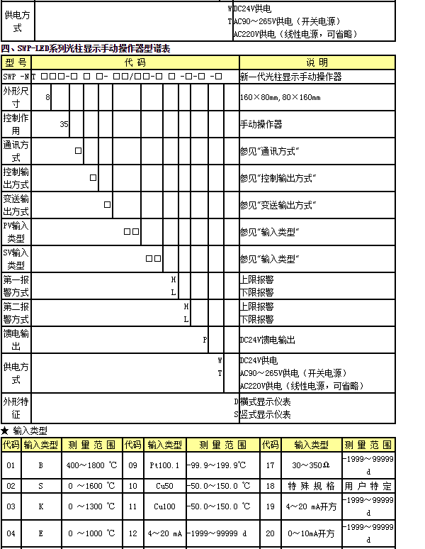 SWP-LED系列手動(dòng)操作控制器/光柱顯示手動(dòng)操作器集數(shù)字儀表與模擬儀表于一體,可對(duì)溫度、壓力、液位、速度等測(cè)量信號(hào)進(jìn)行數(shù)字量顯示控制(高亮度LED數(shù)碼顯示)及相對(duì)模擬量顯示(光柱顯示),使測(cè)量值的顯示更為清晰直觀。并可選擇雙光柱顯示。