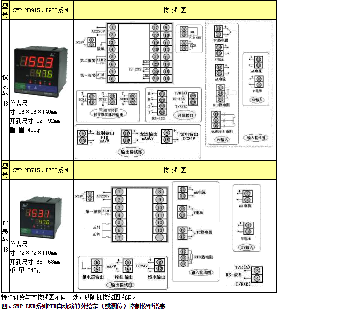 三、儀表外形及接線圖(以下為基本配線,特殊訂貨請參考見隨機(jī)接線圖)