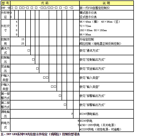 SWP-LED系列PID自整定控制儀/PID光柱顯示控制儀表集數(shù)字儀表與模擬儀表于一體,可對溫度、壓力、液位、速度等測量信號進(jìn)行數(shù)字量顯示控制(高亮度LED數(shù)碼顯示)及相對模擬量顯示(光柱顯示),使測量值的顯示更為清晰直觀,并可選擇雙光柱顯示。