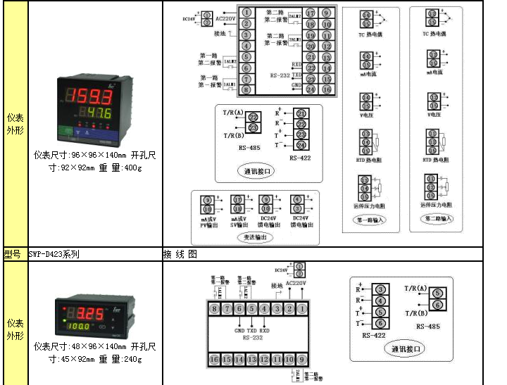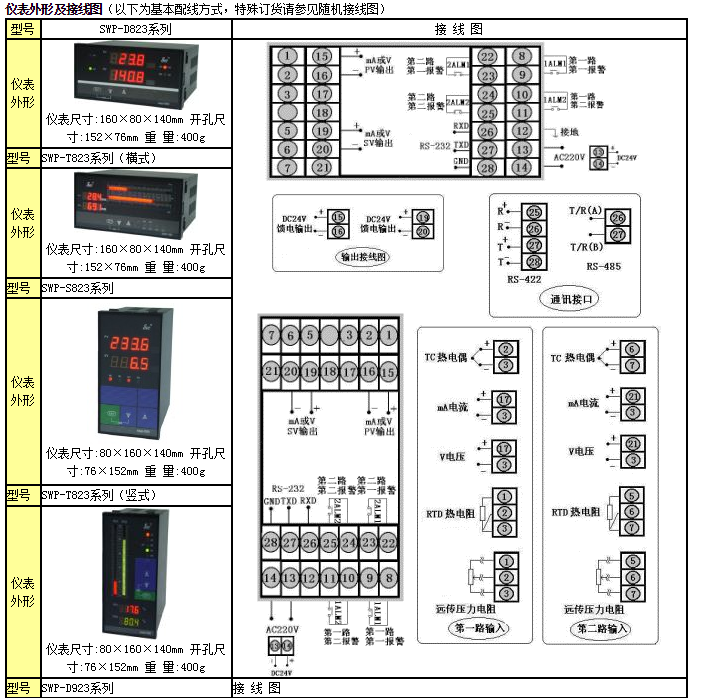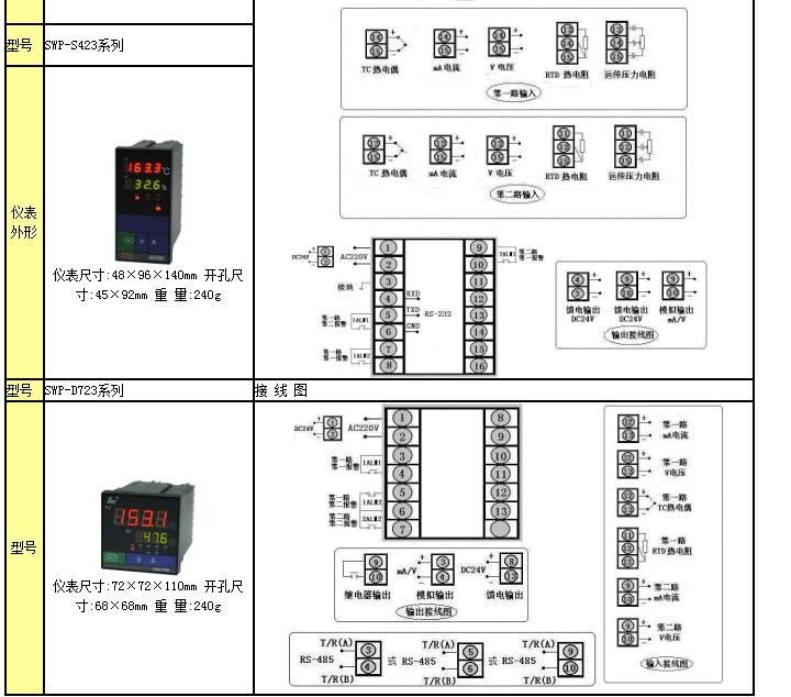 SWP-LED系列雙回路數(shù)字顯示控制儀型譜表