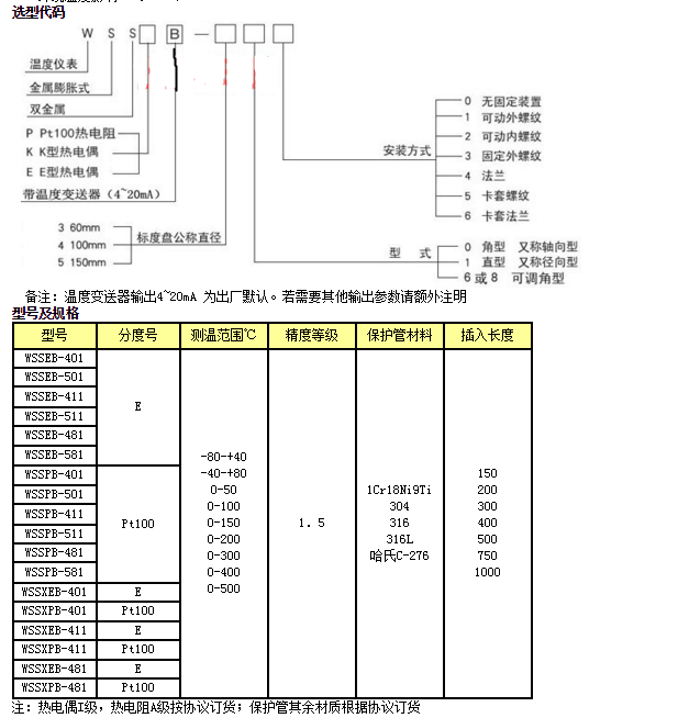 作為雙全屬溫度計系列,它包括了雙全屬熱電阻(偶)一體化溫度計和雙全屬熱電阻(偶)一體化溫度交送器。將熱電阻(偶)和雙全屬元件安裝在同一個保護管內(nèi)做成雙全屬熱電阻(偶)一體化溫度計;將熱電阻(偶)和雙全屬元件安裝在同一個保護管內(nèi),并將溫度變送模塊安裝在其上的接線盒里,做成雙全屬熱電阻(偶)一體化溫度變送器。