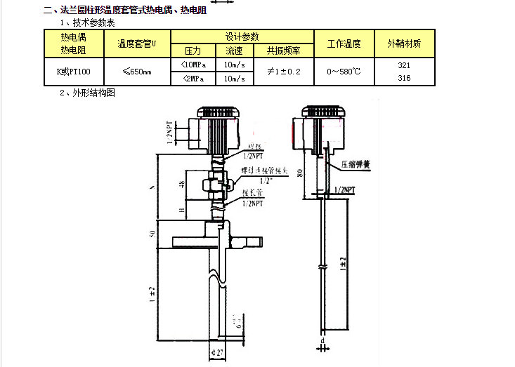一、法蘭錐形溫度套管式熱電偶、熱電阻