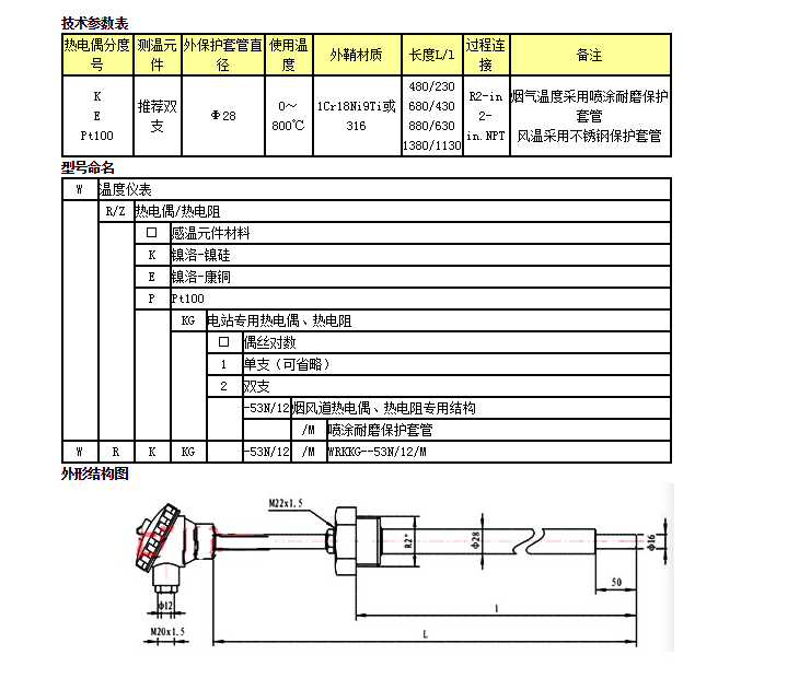 WRKKG-53N/12M,WRKKG-253N/12M,WREKG-53N/12M,煙風道熱電偶、熱電阻