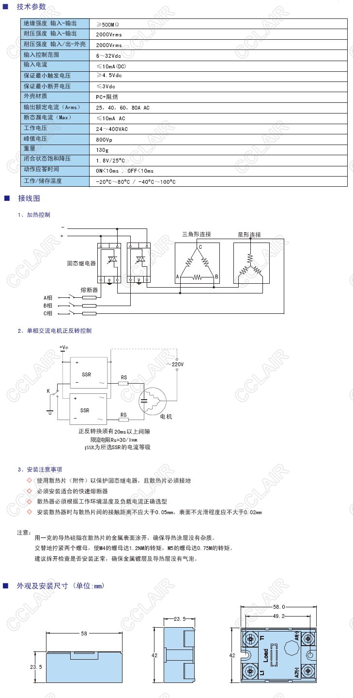 RFA-25A400,RFA-40A400,RFA-60A400,RFA-80A400,RFA芯片型固態(tài)繼電器
