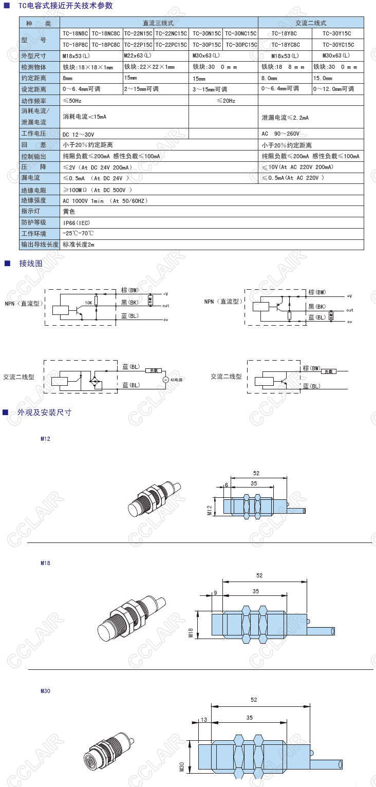 18P(PC)8C/TC-18N(NC)8C,30P(PC)15C/TC-30N(NC)15C,TC-18Y8C,TC電容式接近開關