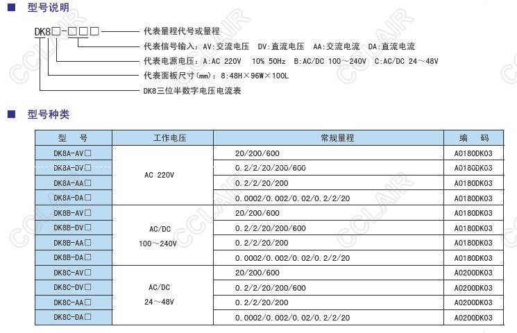 DK8C-AV20,DK8C-AV200,DK8C-AV600,DK8C-DV0.2,DK8C-DV2,DK8C-DV20,DK8C-DV200,DK8C-DV600