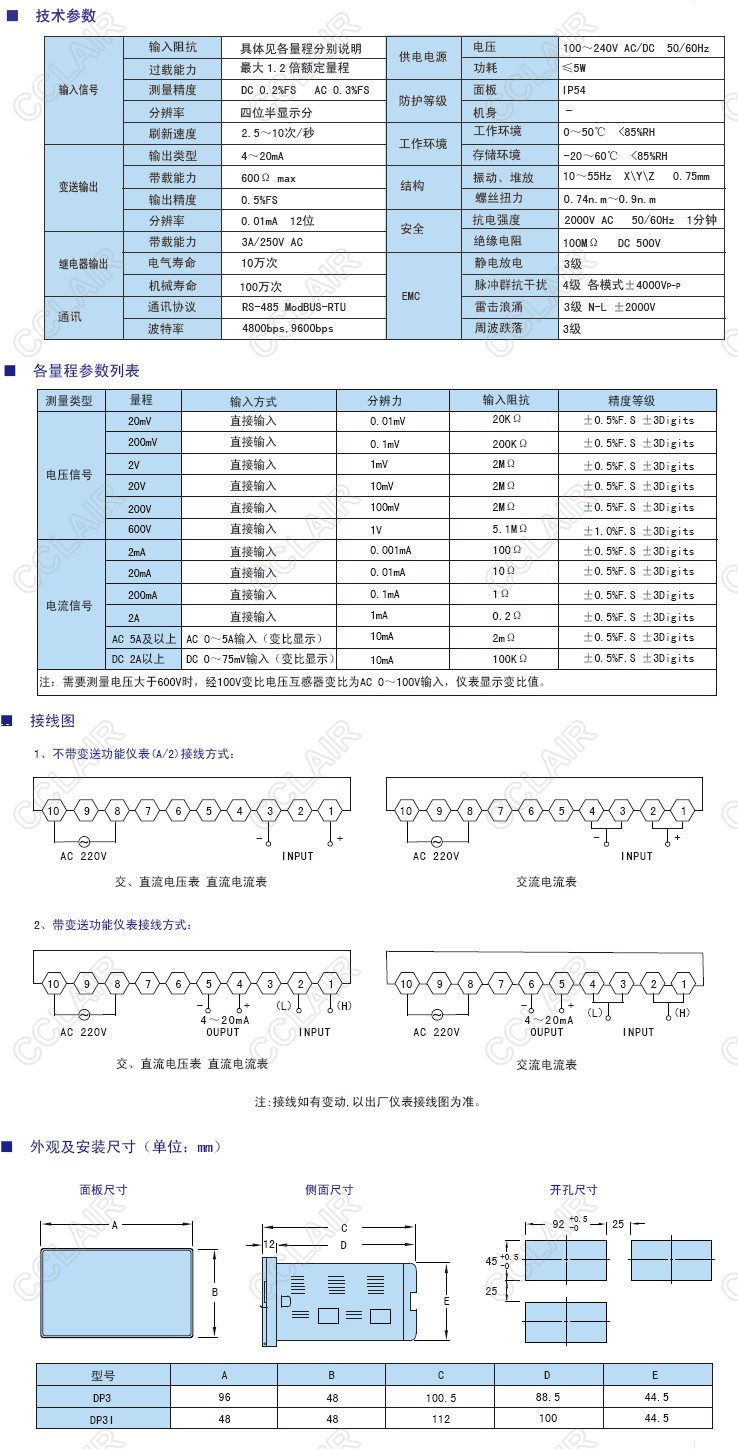 DP3-AA2,DP3-AA20,DP3-AA200,DP3-AV2,DP3-AV20,DP3-AV200,DP3-AV600,DP3三位半單測量顯示電流電壓表