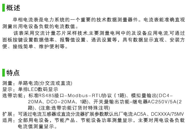一.數(shù)顯單相電流表 產(chǎn)品概述 80方形 外型:80*80mm 開孔:76*76mm