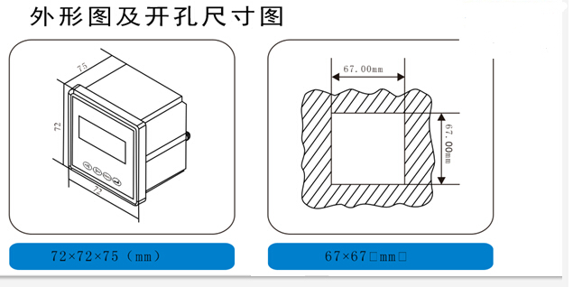 PD204U-AK4,智能三相電壓表 產(chǎn)品概述 72方形    外形:72*72mm    開(kāi)孔:67*67mm