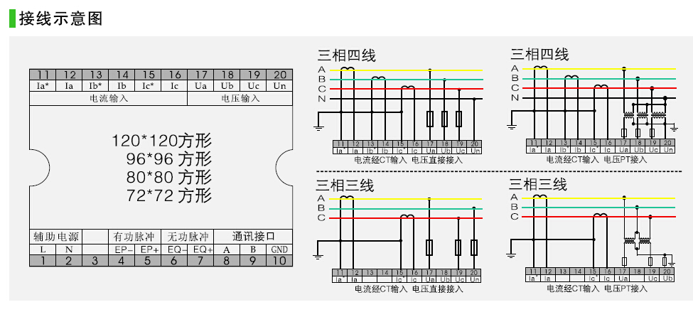 視在功率 有功電能 無(wú)功電能(計(jì)量)RS485通訊 三排LED數(shù)碼管顯示,96*96mm外形