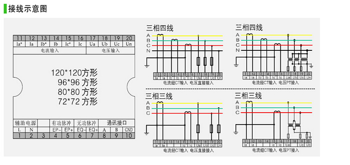 視在功率 有功電能 無功電能(計(jì)量)RS485通訊 三排LED數(shù)碼管顯示,120*120mm外形