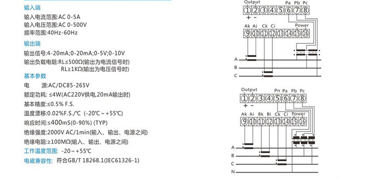 無(wú)功功率變送器輸出范圍:DC4-20mA、0-20mA、0-5V、0-10V、1-5V等用戶需要的標(biāo)準(zhǔn)信號(hào)