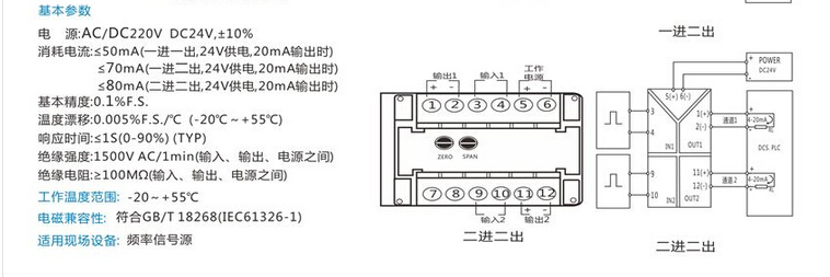 GE703-F頻率變送器輸出范圍:DC4-20mA、0-20mA、0-5V、0-10V、1-5V等用戶需要的標(biāo)準(zhǔn)信號
