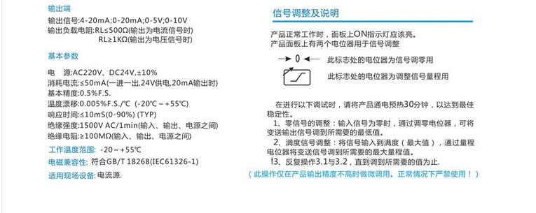 BS-2全隔離信號(hào)調(diào)理器 輸出范圍:4-20mA、標(biāo)準(zhǔn)信號(hào)