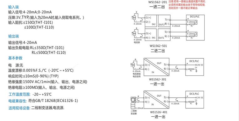 信號(hào)隔離器輸入范圍:DC4-20mA、0-20mA等用戶特定規(guī)格