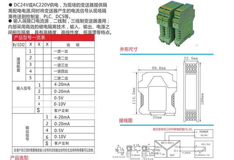 WS15242信號隔離器,信號分配器,全隔離輸出信號分配器 安全隔離柵,信號隔離器模塊