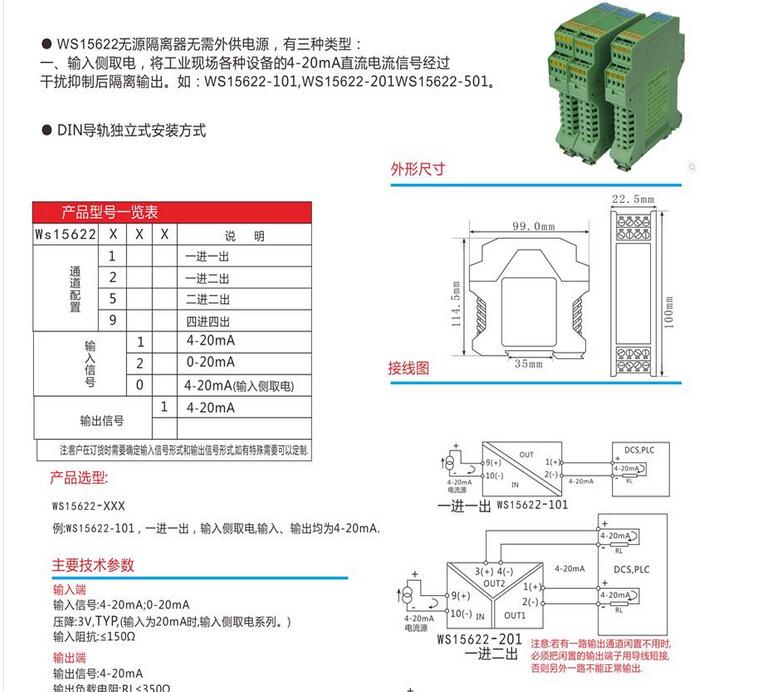 WS15622無源電流轉(zhuǎn)換模塊,電流分配器,全隔離信號隔離器,將輸入的四路信號隔離輸出,無需外接電源可正常工作,輸入輸出隔離,傳輸精度高,標(biāo)準(zhǔn)DIN T型導(dǎo)軌安裝