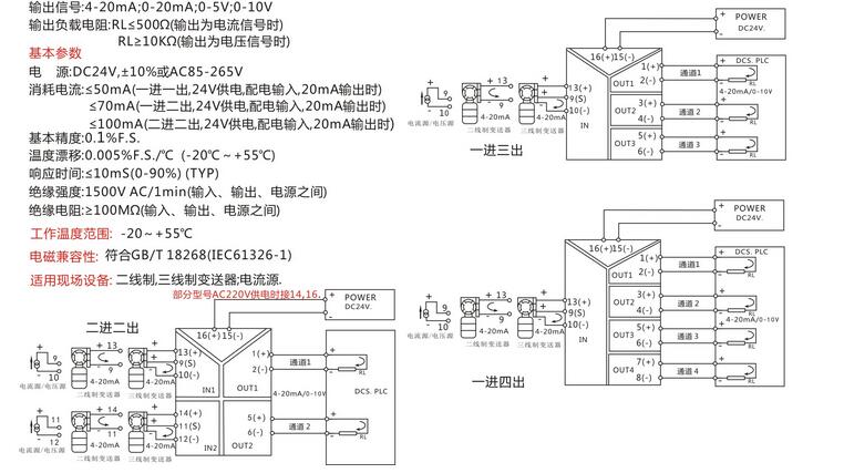 將輸入信號變換為兩路相互隔離的信號,低功耗,低熱量,低漂移,DIN T型導(dǎo)軌安裝