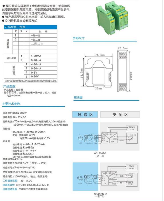 檢測(cè)端安全柵 隔離式安全柵 詳細(xì)技術(shù)參數(shù)及接線(xiàn)方式