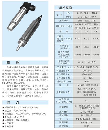 采用高穩(wěn)定性,高準(zhǔn)確度隔離金屬膜片的力敏芯片,經(jīng)內(nèi)置存儲器存取傳感器的環(huán)境溫度、壓力及輸入/輸出特性修正參數(shù)、再經(jīng)CPU微處理器運(yùn)算,進(jìn)行溫度自動補(bǔ)償,非線性校正、信號放大、V/I轉(zhuǎn)換與A/D轉(zhuǎn)換,輸出4-20mA或0-10mA的標(biāo)準(zhǔn)信號。