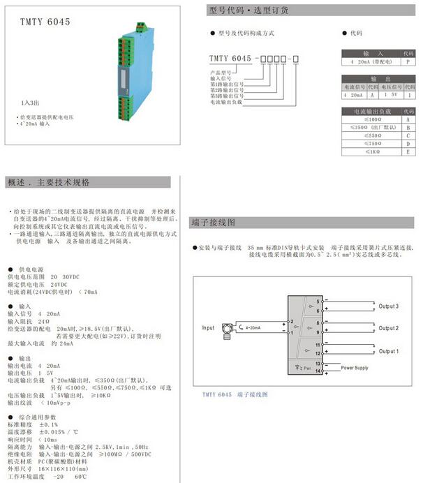 TMTY6045,TMTY6045-PA,TMTY6045-P1,1入3出 電流信號輸入配電隔離器