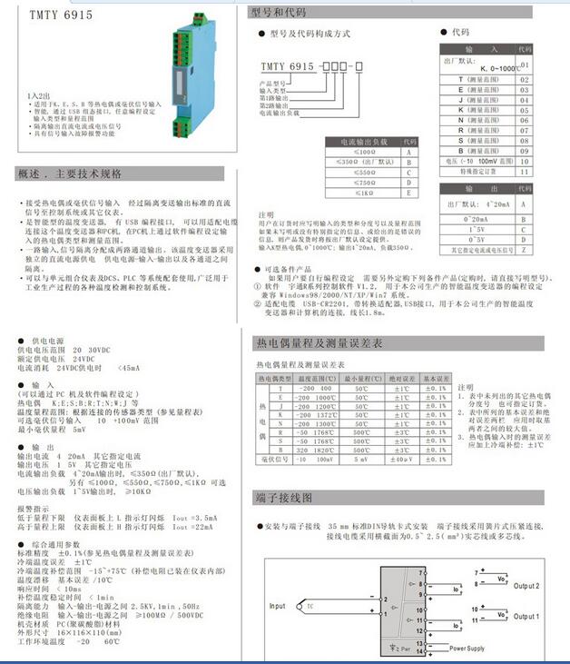 智能型熱電偶輸入隔離變送器(一入二出/通過(guò)USB接口與個(gè)人電腦連接/設(shè)定量程、分度號(hào))
