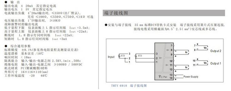 TMTY6918 TMTY-6918-01A,TMTY-6918-01B,智能型熱電阻輸入隔離變送器