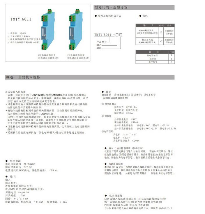 TMTY6011, TMTY-6011-KS,TMTY-6011-KT,TMTY-6011-KP,開關(guān)量輸入隔離器