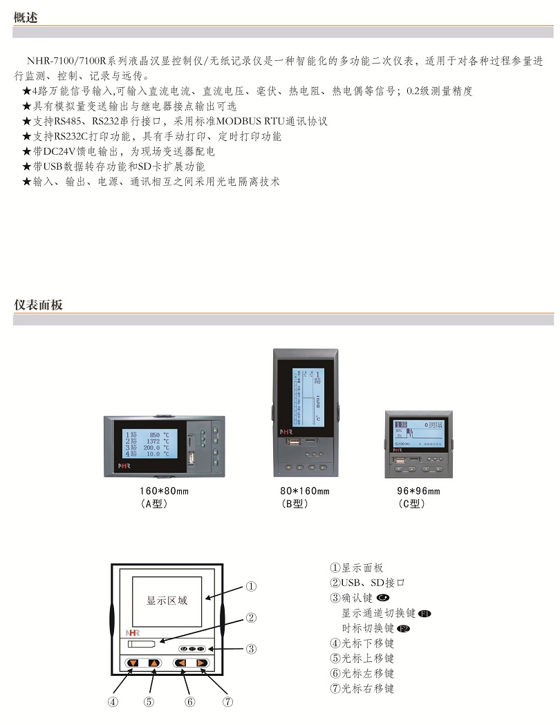 NHR-7100/7100R液晶漢顯控制儀/無(wú)紙記錄儀